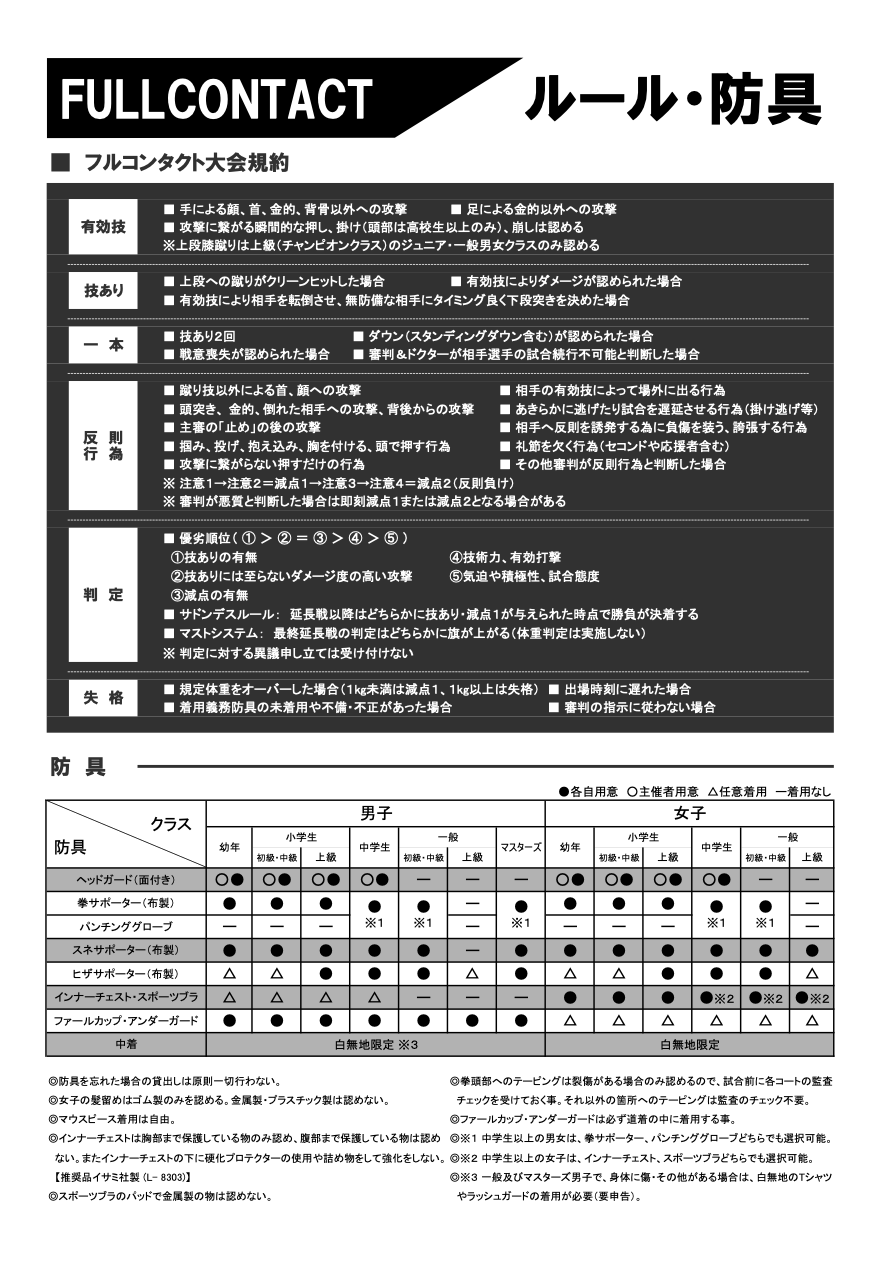 全日本大会キック規約